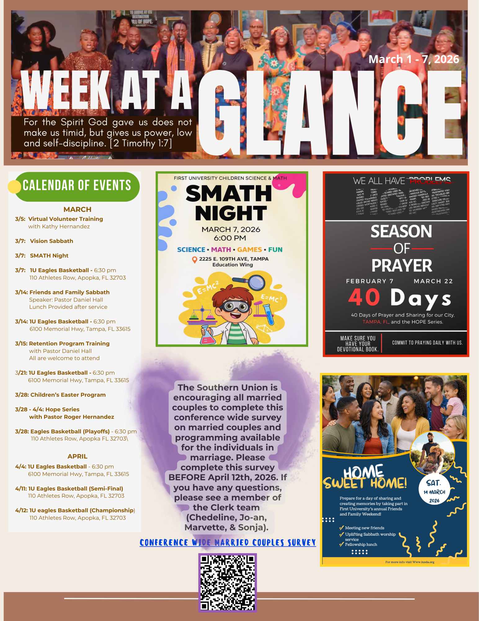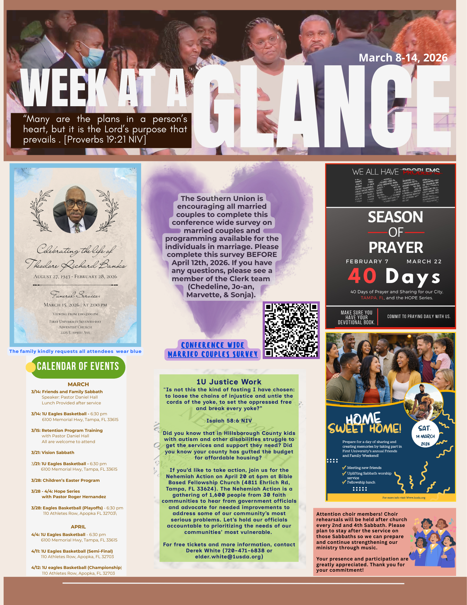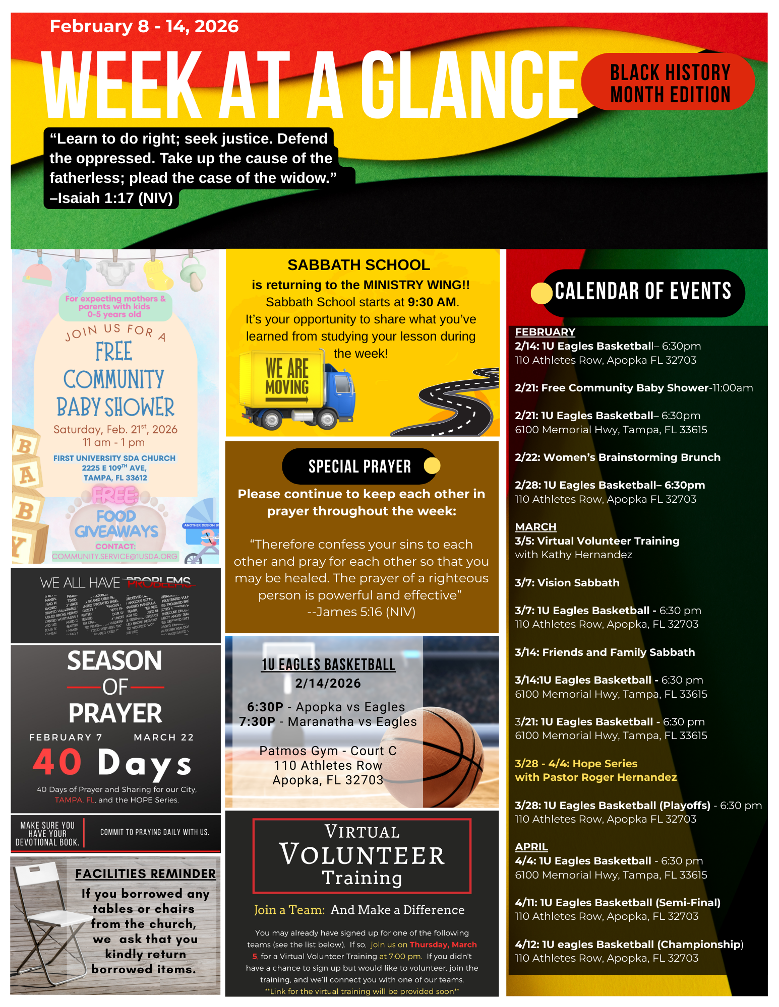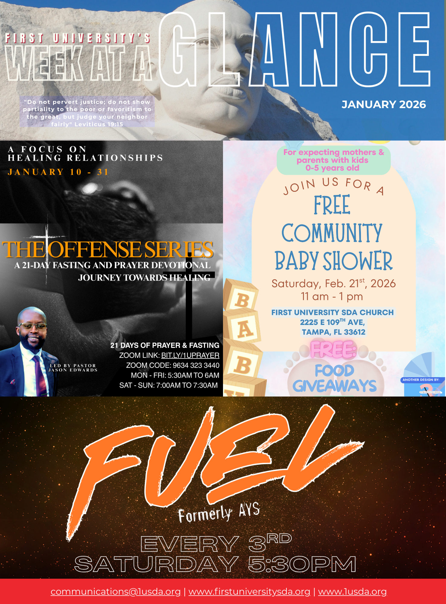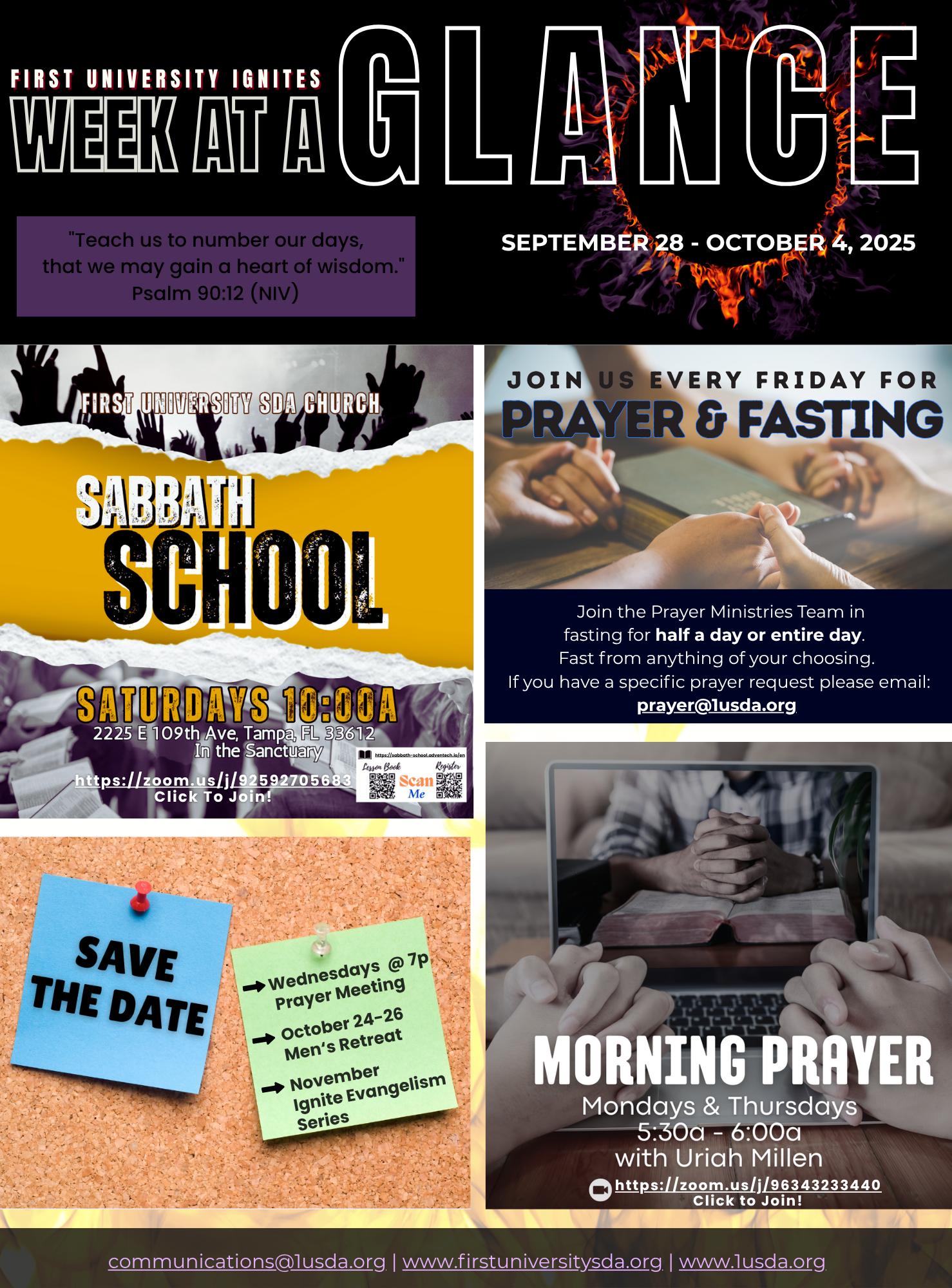 Welcome to First University Seventh-day Adventist Church in Tampa, Florida. We are a congregation that believes in Loving Intentionally, Teaching Truthfully, and Worshiping Fervently.