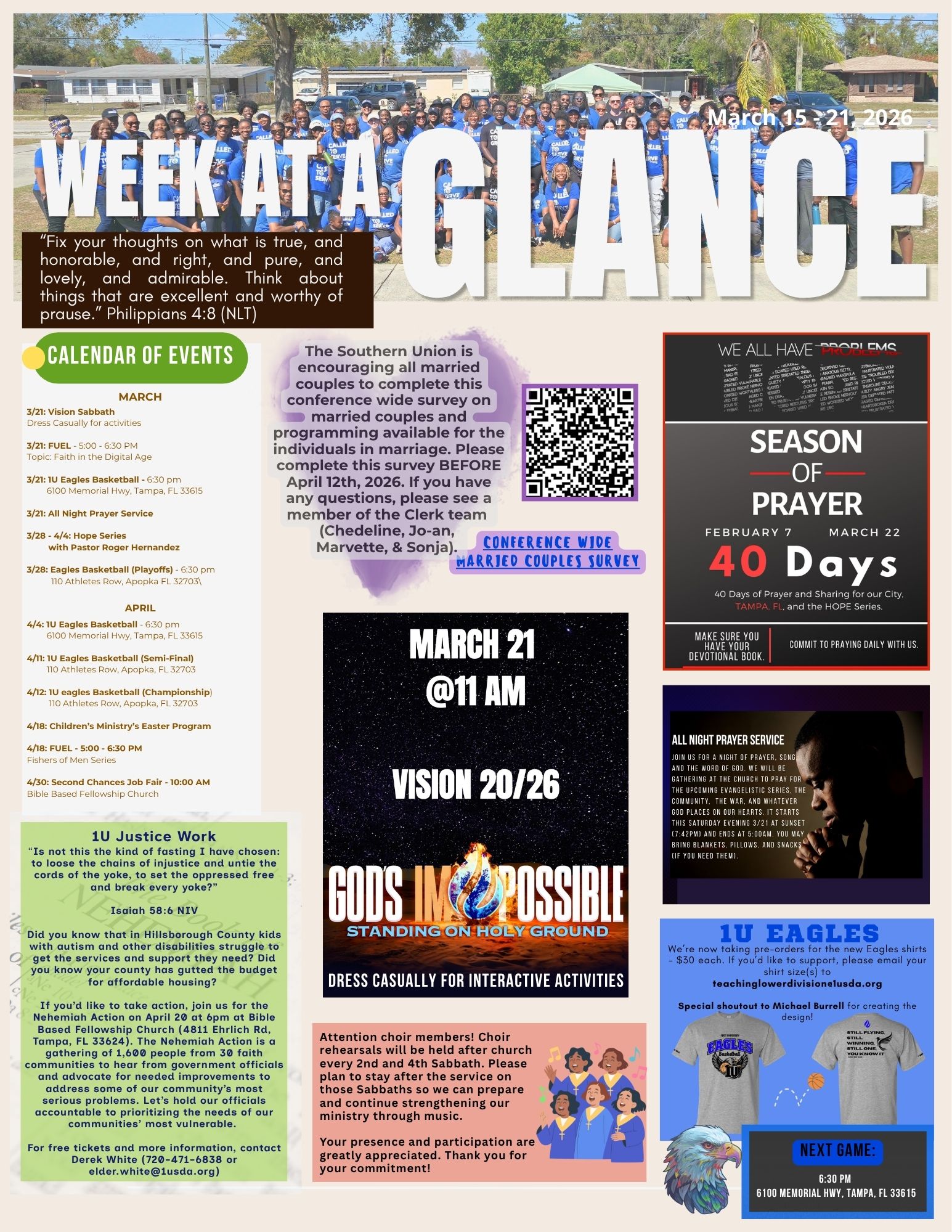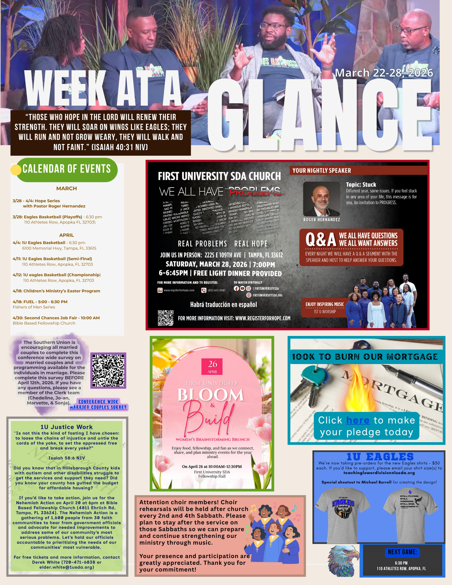 Welcome to First University Seventh-day Adventist Church in Tampa, Florida. We are a congregation that believes in Loving Intentionally, Teaching Truthfully, and Worshiping Fervently.